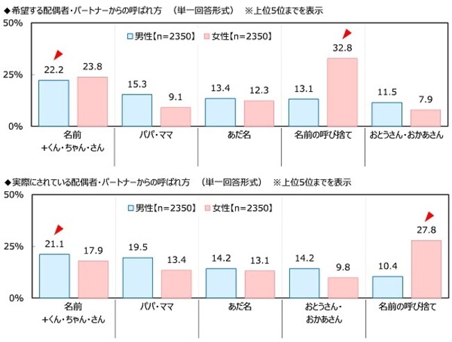 配偶者・パートナーからどのように呼ばれている? 男性1位「名前+くん・さん」、女性1位「名前の呼び捨て」