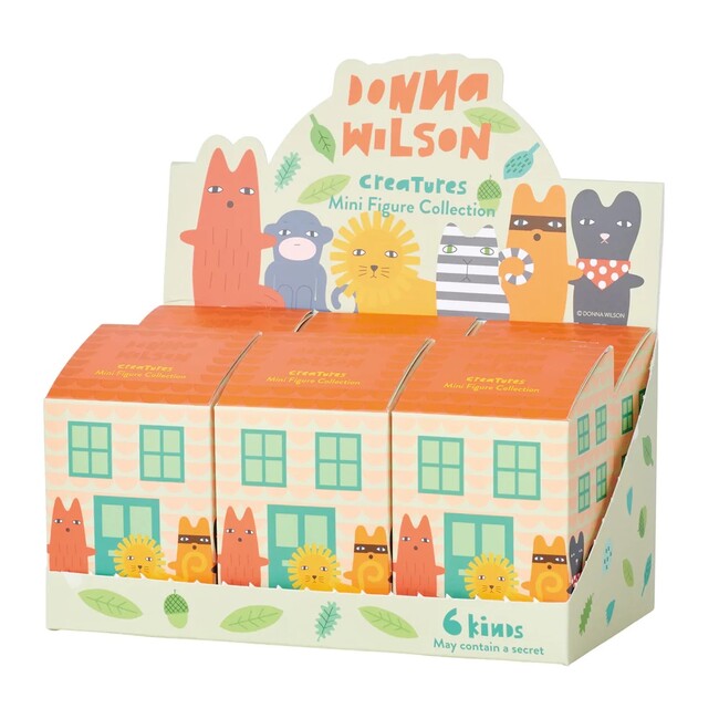ドナが作るニットの不思議なクリーチャーたちが、ミニサイズのフィギュアになりました。今回フィギュアになったのは、大人気の7種類のクリーチャー。全6種類+シークレット1種類の展開です。ミニサイズだけど、存在感は抜群!お家のかたちをしたかわいいボックスに入っているので、プレゼントとしてもぴったりです。