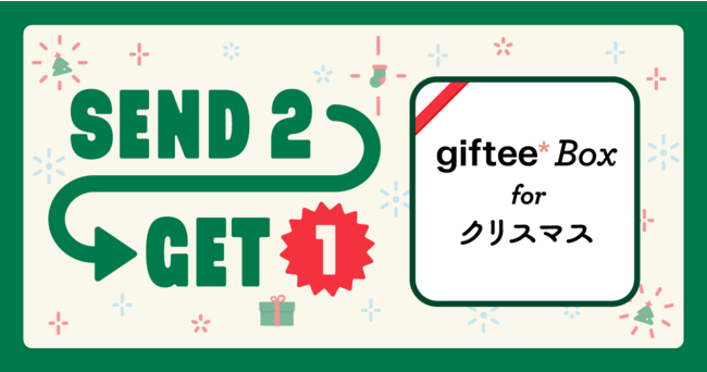 キャンペーン期間中、「giftee Box for クリスマス」500ポイントを2つ贈ると、自分にも同じeギフトがもらえる先着2,000名様限定の「Send2 Get1キャンペーン」を開催いたします。