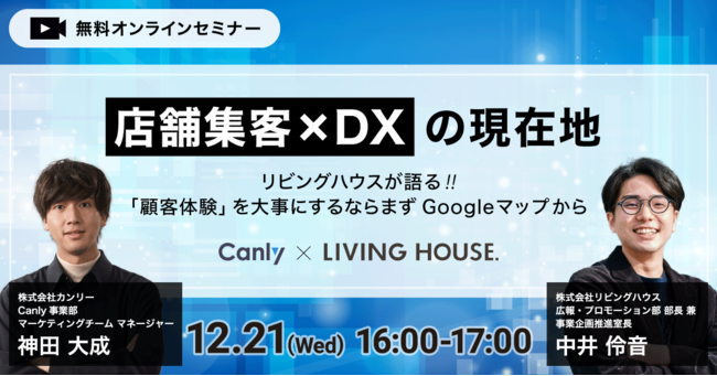 『店舗集客×DXの現在地~リビングハウスが語る!!「顧客体験」を大事にするならまずGoogleマップから~』セミナーを12月21日に開催決定!