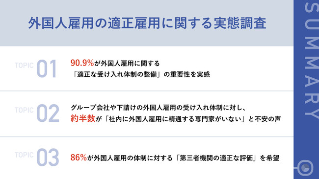 90.9%が「外国人雇用に関する適正な受け入れ体制の整備」の重要性を実感