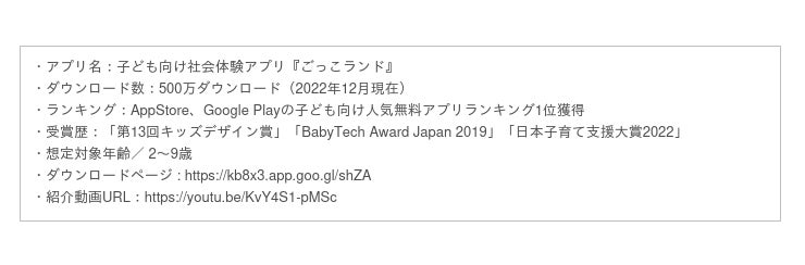 【子ども向け社会体験アプリ『ごっこランド』について https://biz.kidsstar.co.jp 】
