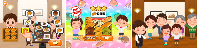 「ステキなベーカリーレストラン」は、「やきたてパンをつくろう!」と「パンをくばろう!」で構成され、パンの魅力を楽しく学ぶとともに、ベーカリーレストランに親しみを持っていただけるゲームです。