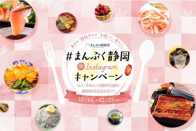 より多くの首都圏の方に静岡の魅力をお届けするため、2022年12月1日(木)から12月28日(水)まで、静岡県産品の詰合せ(5,000円相当)等が当たる「まんぷく静岡in東京」インスタグラムのプレゼントキャンペーン(https://www.manpuku-shizuoka.jp/lp/instacp_2022/)を開催しています。