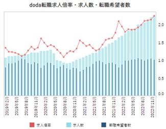 doda転職求人倍率2022年11月は2.23倍(前月差+0.11ポイント)
