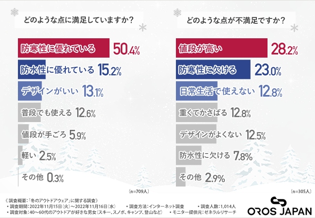 冬のアウトドアウェアの不満TOP3『値段が高い』『防寒性に欠ける』『日常生活で使えない』