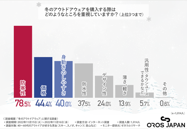 また、どのような点を重視して、冬のアウトドアウェアを選んでいるのでしょう。