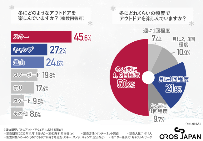 そこで今回、断熱効果に優れたアウター『IMMIX jacket』(https://oros-japan.com/)を販売する株式会社ユナイテッドは、40~60代のアウトドアが好きな男女(スキー、スノボ、キャンプ、登山など)を対象に、「冬のアウトドアウェア」に関する調査を実施しました。