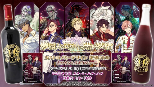 『夢職人と忘れじの黒い妖精』より彫刻ボトル(赤ワイン・ぶどうジュース)が通販にて12月28日まで受注販売中!