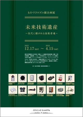 パナソニックグループは、パナソニックミュージアム(所在地:大阪府門真市、館長:新田 淳)にて、独立行政法人国立科学博物館の「重要技術史資料(愛称:未来技術遺産)登録制度」をテーマにした企画展を、2022年12月17日から2023年4月15日まで開催します。