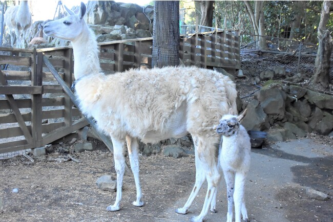 現在、赤ちゃんはお母さんの母乳を飲んで順調に成長しており、フェネック牧場隣の「ラマ展示場」にて親子で仲睦まじく暮らしております。