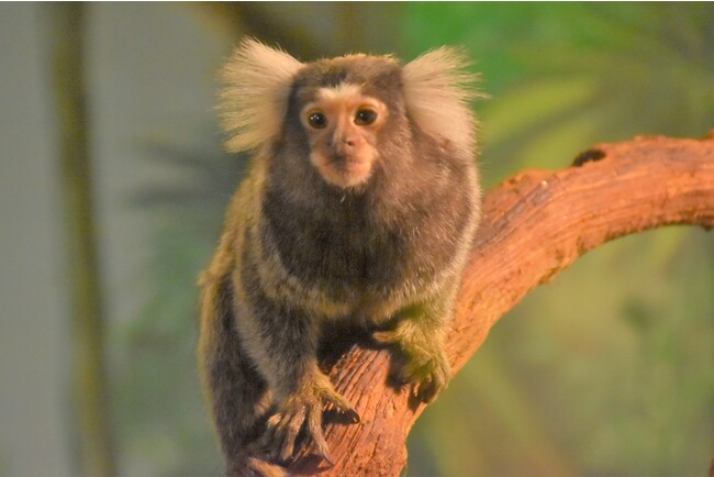 【メモ】体重300g未満という小型のサルで耳の白い房毛が特徴的です。昼行性であり、樹上生活を主としています。