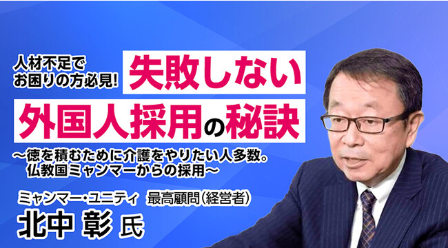 ◆タイトル:人材不足でお困りの方必見!失敗しない外国人採用の秘訣~徳を積むために介護をやりたい人多数。仏教国ミャンマーからの採用~