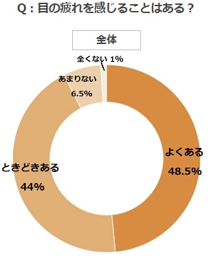 目の疲れを感じることがあると回答した人は「よくある」「ときどきある」合わせて、実に9割以上ということで、殆どの人が感じているということがわかりました。