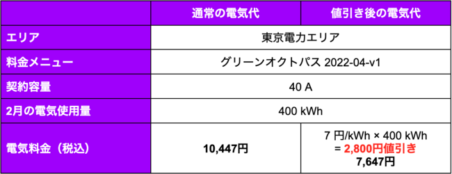 ご参考:2月の電気料金400kWh/2月(東京エリア)40Aのお客さまの例
