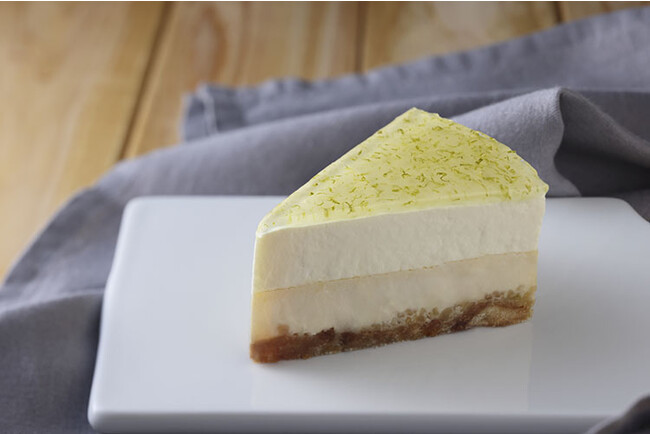 シンプルな見た目ながら、山田牧場(甲賀市)の乳製品や、九重味噌(大津市)の白味噌、滋賀県産の米粉や甘酒、塩麴など地元の素材の味わいをぎゅっと凝縮したベイクドとレアの2層のチーズケーキ。アクセントとして爽やかなライムの香りをきかせました。