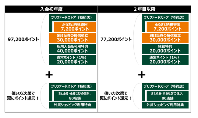 三井住友カード株式会社(本社:東京都江東区、代表取締役社長:大西 幸彦、以下:三井住友カード)は、2023年1月1日より、「三井住友カード プラチナプリファード」のポイント還元を強化します。三井住友カードをご利用のお客さまの資産形成をより力強くサポートするため、SBI証券で「三井住友カード つみたて投資」ご利用のお客さまへのポイント還元率を高めます。併せて、ふるさと納税サイト「さとふる」「ふるなび」でのふるさと納税寄附に際してのポイント還元率も見直し、毎年のふるさと納税寄附でも、お得にポイントを貯められるようにします。