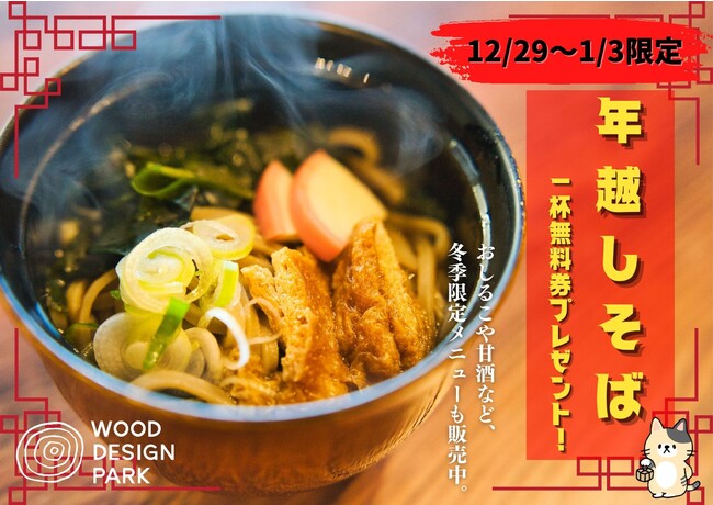 ウッドデザインパーク岡崎内の古民家お食事処『自然薯料理にゃあにゃあ庵』で、年末年始限定の小盛そばを無料で振舞います。