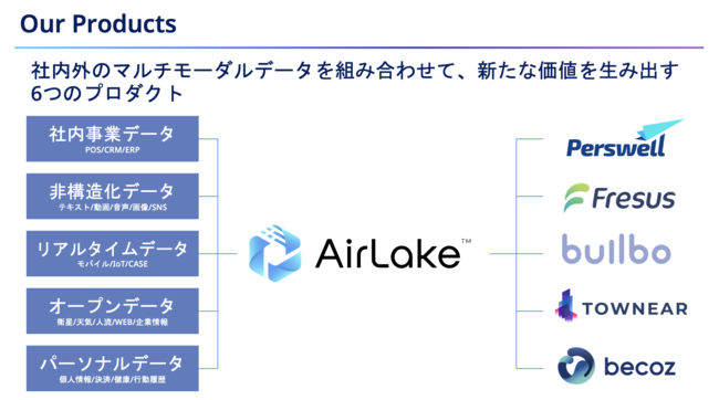 「AirLake」は非構造化データを誰でも簡単に使えるデータに変換できるクラウド型のデータプラットフォームです。(https://lp.airlake.ai/)