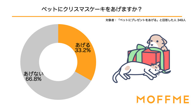 「ペットにクリスマスケーキはあげますか?」という質問に対して、ペット用のクリスマスケーキをあげると回答した人は33.2%という結果となりました。