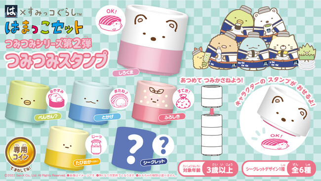 株式会社はま寿司(代表取締役社長:遠藤 哲郎 本社:東京都港区)が展開する100円寿司チェーン「はま寿司」でお楽しみいただける「はまっこセット」のおもちゃに、つみつみシリーズ第2弾として「すみっコぐらし つみつみスタンプ」が12月26日(月)から全国の店舗に登場します。さらに今回、「PUI PUIモルカー DRIVING SCHOOL」 がはまっこセットに初登場します。