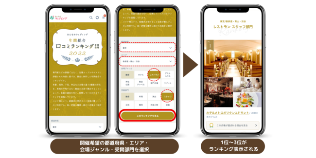 『みんなのウェディング』が「年間総合口コミランキング受賞会場 2022」一覧ページを公開!