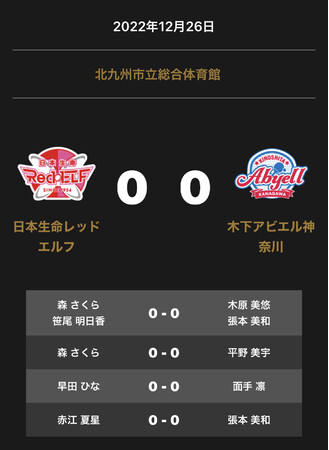ノジマTリーグ 2022-2023シーズン 公式戦 12月26日 日本生命レッドエルフ vs 木下アビエル神奈川 オーダー発表