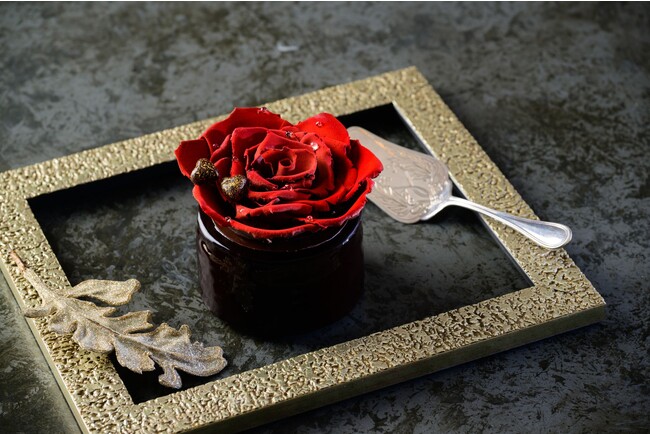 1枚1枚パティシエの手作業によって本物の花びらを思わせるチョコレートを緻密に重ね合わせて作り上げられた、トップの大きなバラの花が目を引くガトーショコラ。土台のガトーショコラは、濃厚さが口いっぱいに広がるようしっとりと仕上げました。パティシエがカカオ豆の選定からこだわり作られたビーントゥバーのチョコレートを用い、コロンビア産カカオのフルーティーで爽やかな酸味と奥深い香りの余韻が広がる味わいをご堪能いただけます。