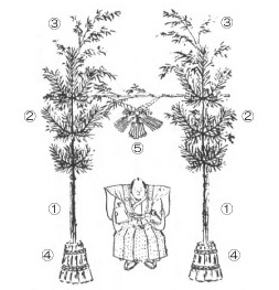 松(2.)にしめ縄を巻き付け、中央部で交差させケンダイと呼ばれる