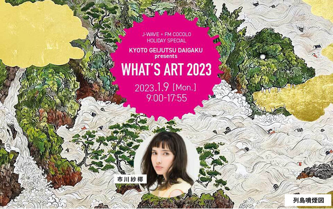FMラジオ局J-WAVE(81.3FM)では、2023年1月9日(月・祝)9:00~17:55、市川紗椰がお届けする9時間の特別番組『J-WAVE + FM COCOLO HOLIDAY SPECIAL KYOTO GEIJUTSU DAIGAKU presents WHAT’S ART』をオンエアいたします。