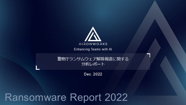 AironWorks株式会社 (本社:東京都港区、代表取締役:寺田 彼日、以下「AironWorks」)は、『身代金ウイルス、警察庁が暗号解除成功 支払い未然防止』(日本経済新聞 2022年12月28日) を受けて、ランサムウェア脅威に対抗すべく、イスラエル - 米国及び世界の連携動向と2023年の展望に関する分析レポートを発表いたしました。