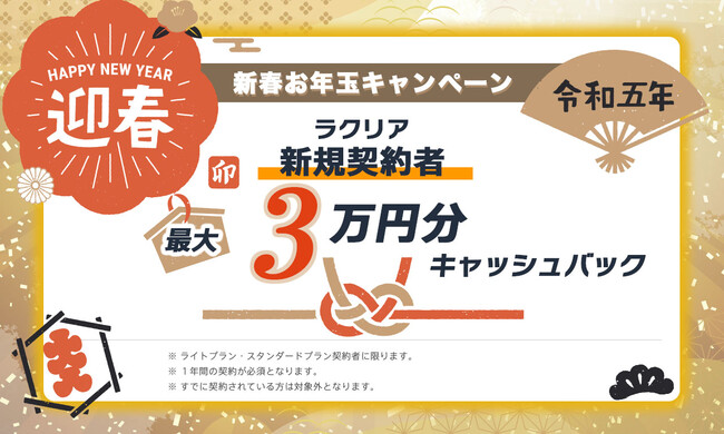 「世界一優しい行政手続きに」をキャッチコピーとする、株式会社リアリゼイション(本社:東京都渋谷区)は、補助金・助成金申請SaaS「ラクリア」の新春お年玉キャンペーンを開始しました。