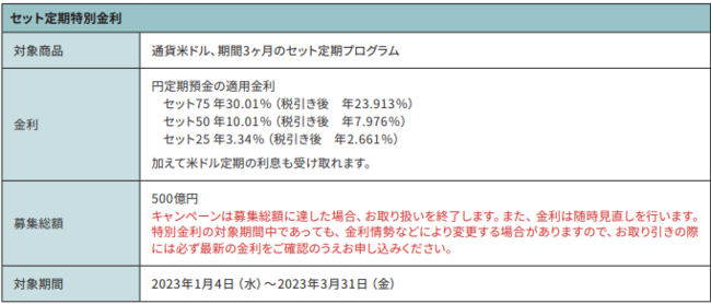 「セット定期特別金利」など3企画実施のお知らせ
