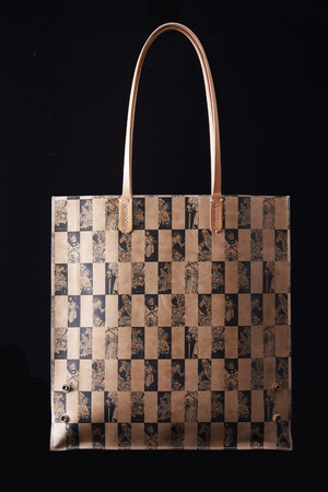 日本を代表する浮世絵師葛飾北斎が「北斎漫画」第五編で描いた様々な鳥居、第三編で描いた鐘馗と邪鬼をモチーフにしたトートバッグです。ナチュラルレザーに施した高精細なインクジェットプリントが魅力で、美しい一枚革仕立てのシャープなデザインに仕上げました。使うほどに革は艶としなやかさを増していきます。創悦のラインナップは、男女兼用のジェンダースタイルです。