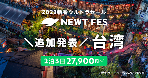 『NEWT(ニュート)』は、2023年こそもっと自由に海外旅行を楽しんでほしいという想いを込めて、新春ウルトラセール「新春NEWT FES」を実施しております。この度、日本人の観光地として大人気の台湾ツアーが「新春NEWT FES」のラインナップに追加することが緊急決定しました。