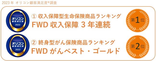 FWD生命、2023年 オリコン顧客満足度調査において、『FWD収入保障』が3年連続1位、『FWDがんベスト・ゴールド』が2位に選ばれました