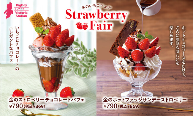 ぜひこの機会に、お近くの「ビッグボーイ」「ヴィクトリアステーション」で、「冬のいちごフェア」をお楽しみください。