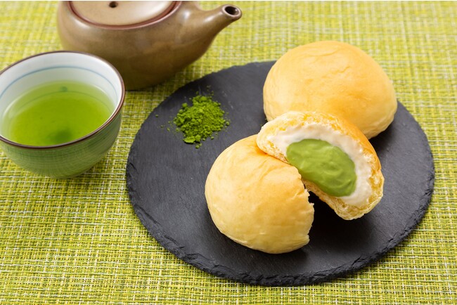 同じ広島県のスポーツチームと企業が連携し、地域を盛り上げることを目指した「オリジナルくりーむパン」を共同開発いたしました。チームカラーの‟グリーン”をテーマにしたフレーバー案から、JTサンダーズ広島のキャプテンであり日本代表登録選手の小野寺選手との試食会を経て「抹茶」に決定しました。軽い口当たりのクリームと、香り高い八女茶を使用した抹茶クリームを2層にしたコラボくりーむパンが誕生しました。