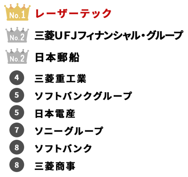 2022年、投資家に印象を残した銘柄は?1位「レーザーテック」、2位は「三菱UFJフィナンシャルグループ」と「日本郵船」。