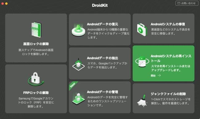 新しいバージョンのDroidKit 2.0.2(Win)が公開されました。Windows版のDroidKit は「Androidシステムの再インストール」機能を最適化して、安定性を向上しました。