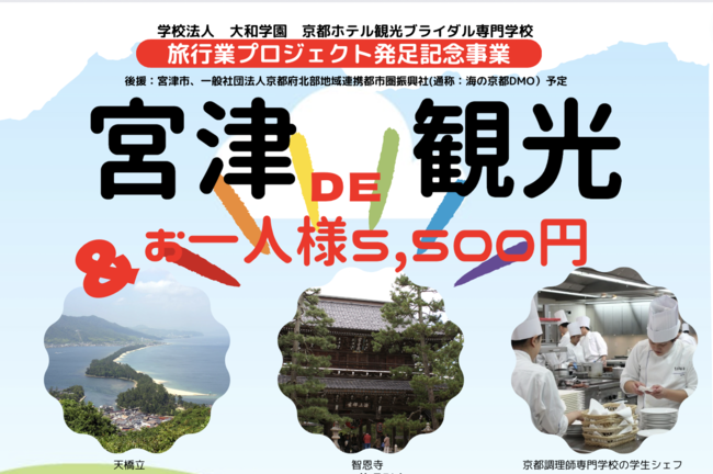 京都ホテル観光ブライダル専門学校(京都府京都市/校長田中幹人)旅行学科では、京都調理師専門学校と協働し、大阪・関西万博に向けて、京都の北部地域が誇る食文化や観光産業の強み、文化や観光資源などの魅力を国内外へアピールし、京都の活性化につなげていくための布石となるプロジェクトを展開しています。