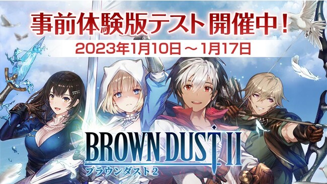 株式会社NEOWIZ (本社:韓国 京畿道城南市、共同代表:金 承徹(キム・スンチョル)/裵 泰根(ベ・テグン))は、スマートフォン向けRPG『ブラウンダスト2』において、本日2023年1月10日(火)午前11:00~1月17日(火)午前11:00まで、「事前体験版テスト」を実施いたします。
