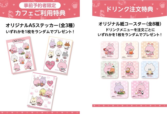 ■カフェ来店特典:カフェをご利用いただき、メニューをご注文いただいた方に「オリジナルA5ステッカー(全3種)」をランダムで1枚プレゼント。