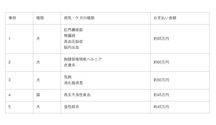 ※上記の数値は、PS保険加入者さまから請求されたものであり、ペットメディカルサポートが補償する範囲を示すものではありません。また、平均や水準を示すものでもありません。