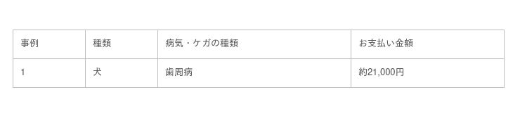 保険金のお支払いは、上記のように高額なものに限りません。次に、平均的なお支払い事例としてペットの歯周病の診療をご紹介します。