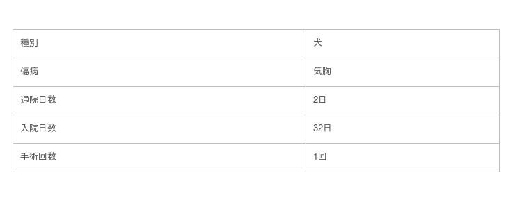 ※下記の内容は、犬の気胸の一般的な診療についての記述であり、PS保険にご請求いただいた事案の診療内容とは異なります。