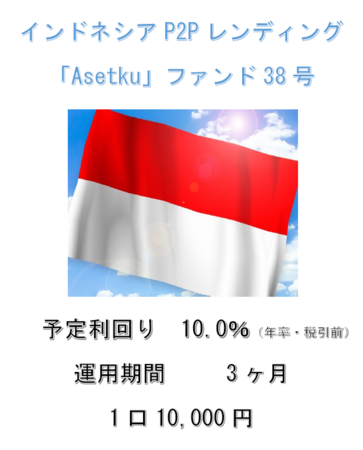 ソーシャルレンディングサービス「アンシンバンク」は、本日15:00よりインドネシアP2Pレンディング「Asetku」ファンド38号の募集を開始いたします。