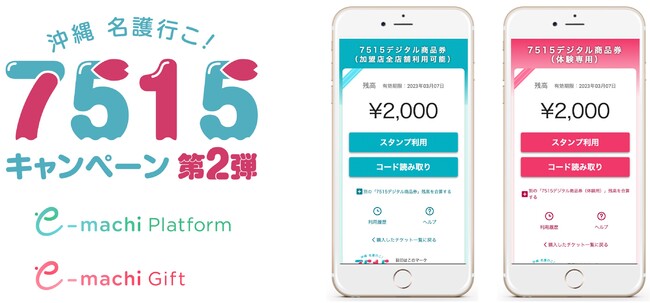 eギフトプラットフォーム事業(※1)を展開する株式会社ギフティ(本社:東京都品川区/代表取締役:太田 睦、鈴木 達哉/以下、ギフティ)は、新型コロナウイルス感染症の影響を受けた沖縄県名護市内事業者の支援を目的に名護市が実施する「名護市内宿泊者向けデジタルプレミアム商品券事業」に、自治体・地域の課題を解決するデジタルプラットフォーム「e街プラットフォーム(R)」(※2)を採用いただきました。これに伴い、市内の宿泊施設へ対象期間中に「7515(ナゴイコ)キャンペーン第2弾」対象の宿泊プランで宿泊された方を対象に、デジタルプレミアム商品券「7515デジタル商品券」の販売を開始しております。なお、「7515デジタル商品券」の購入が可能な宿泊プランの販売が一時中止されておりましたが、ご好評につき、2023年1月6日(金)より再販売を開始しておりますので、あわせてお知らせいたします。本事業は、株式会社JTB沖縄とギフティの連携のもと、株式会社J&Jギフト(本社:東京都豊島区/代表取締役社長:梶谷 直樹)と共同で行っております。