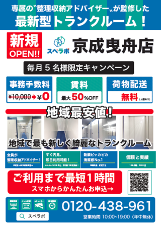 【京成曳舟店/2月1日(水)オープン】見学から契約、解約まで完全非接触・非対面、お申し込みからご利用まで最短1時間!都内、大阪などにて絶賛運営中のトランクルーム【スペラボ】が京成曳舟駅近くに出店!