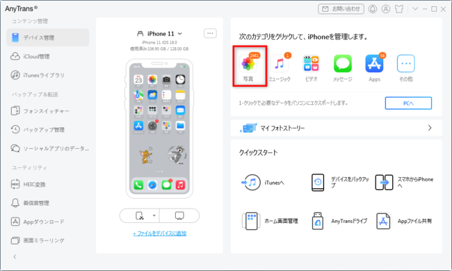 方法3. 専用ツールとしてのAnyTransを利用してiPhoneの写真をパソコンに取り込む